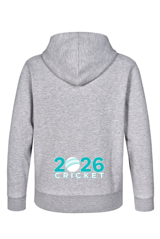 Grey hoodie. Contrast colour inside hood lining. Close front with kangaroo pocket.